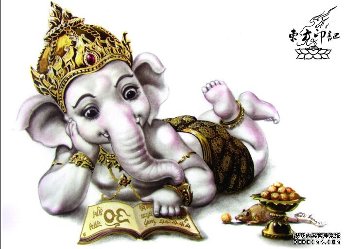 不但象神纹身画的的萌萌的,连象神身边的小老鼠也同样是萌萌的呢。