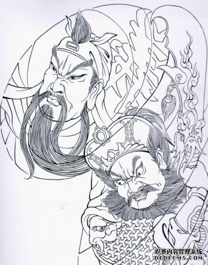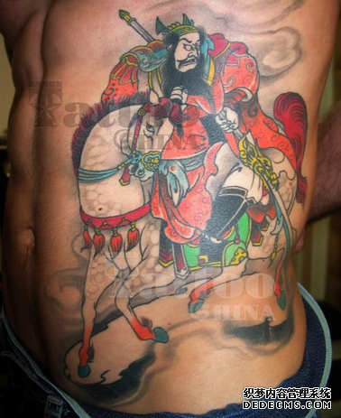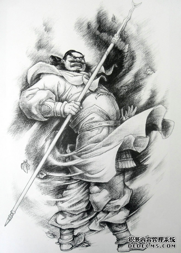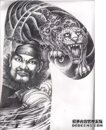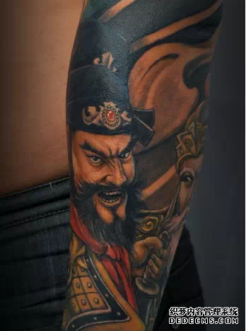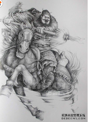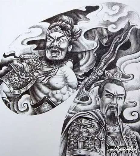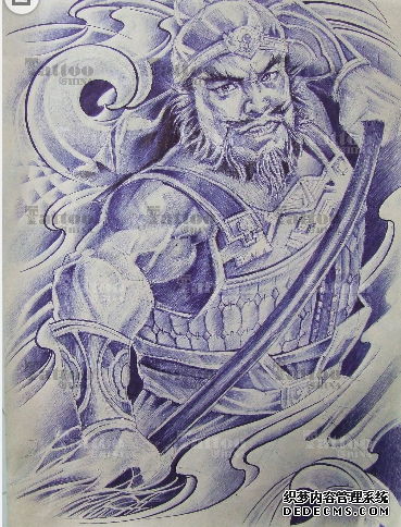 三国人物张飞纹身图案寓意着勇敢和忠义