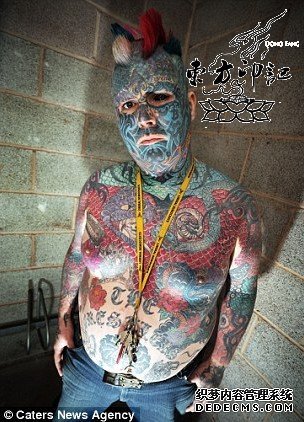 英国男子痴迷纹身 砸20万纹下80%的皮肤
