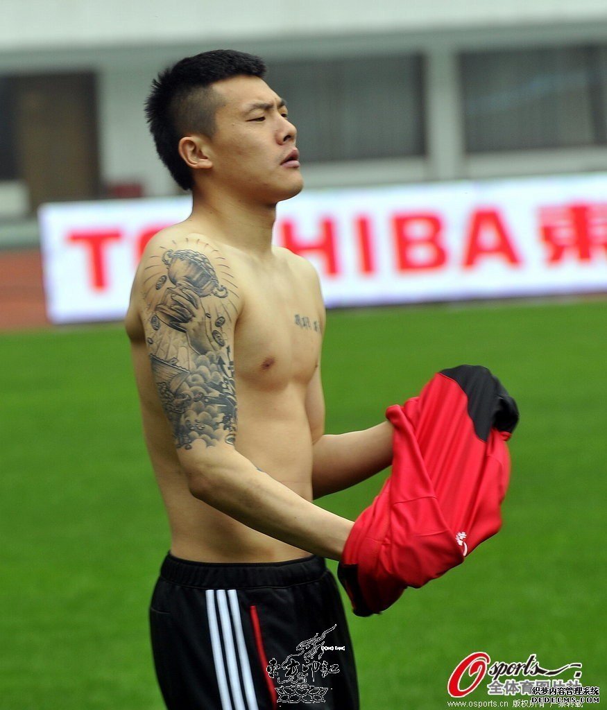 王大雷,这个名字够霸气,当然更霸气的是其过人的守门技术,这位少年成名的最年轻国脚,曾创造了不少中国足球历史上的奇迹,当然,也制造了不少备受争议的话题,例如怪异的发型,个性的纹身,甚至还有曾经在微博上的爆粗口。如今,这位雷人的王大雷已经晋升为奶爸了,结婚生子后,王大雷早已脱尽了当初的任性和不羁,多了一份从容与淡定,然而,毕竟是有个性的80后,其身上的纹身图案是有增无减呢,“纹自己的身。让别人说去吧!”。