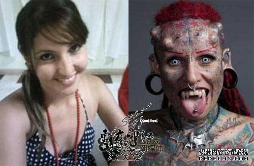 在英国的约克郡,有一位名叫Amanda Brignall的英国女子,已是两个孩子母亲的Amanda Brignall,却有着跟年轻人同样的纹身狂热,年轻人纹身是因为纹身很时尚,很酷,所以会在身上纹上一个或大或小的纹身图案,而这位母亲纹的相当彻底,将身体80%的皮肤进行了纹身,除了纹身外,这位母亲还染发、纹眉、括耳,如此大胆的纹身造型很是拉风呀,即使是年轻人也未必有勇气将自己纹成这样。要问这位英国母亲从什么时候开始纹身,就不得不提起一个很心酸的事情,这位名叫Amanda Brignall的英国女子在与丈夫离婚后,便开始了疯狂的纹身,玫瑰花、骷髅头、性感女郎、英文、数字、星星、动物等等无所不包。如此宏伟的纹身图景,实在是令人震撼。同样因为夫妻关系紧张而开始疯狂纹身的还有一位墨西哥女子克里斯特纳,其纹身造型更彪悍,除了各种疯狂的纹身图案外,还在头上植入铝合金,打造头角,嘴巴上穿孔,眼球上涂黑色,被网友誉为“吸血鬼女人”、2013年复活节最惊恐的装扮之一。