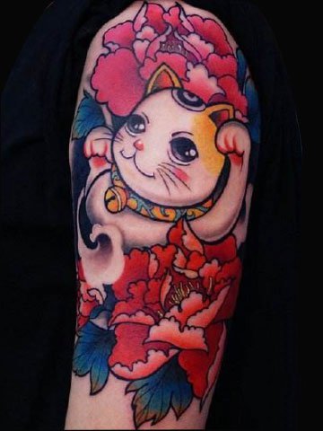双手举起的招财猫,一手在招揽着财运,一手在招揽着福气,加上胸前的铃铛,连幸福吉祥也被招之而来。陷入牡丹花田中的招财猫,哪怕身处富贵,也不忘召集好运。
