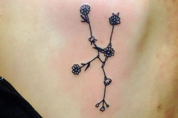 假如想来个不一样的金牛座纹身,那么这个图案你一定会满意。两支独立的花茎,盛开着清丽而不艳俗的花朵,它们聚集在叶片下,犹如微微张开翅膀的蝴蝶,停在空中,凝然不动。你能看出隐藏着的金牛座符号吗?