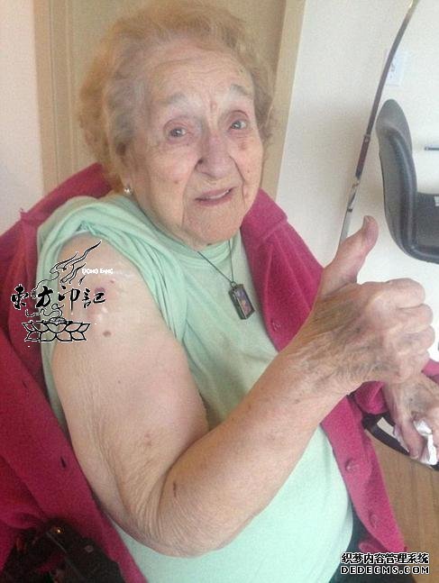 据国外媒体报道,美国西雅图有一位103岁的老奶奶,名叫伊芙琳•考特曼,跟大多数老年人一样,这位老奶奶也是老态尽显,花白的头发,满脸的皱纹,掉光的牙齿,可是与众不同的是,这位老奶奶“人老心不老”,在自己103岁的生日当天,这位老奶奶选择赌博和纹身来为自己庆生。报道称,生日这天老奶奶的孙子带她到赌场庆生,她在赌场高兴地玩着水果老虎机,还大摆全蟹宴,并刻下了人生中的第一个纹身——红心纹身。老奶奶孙子的朋友用相机记录下了她的红心纹身和她灿烂的笑容。这样的庆生方式很是个性呀,不得不承认,纹身在美国确实很流行,纹身不仅仅是年轻人的专利,而且还是老年人的新宠啊。这位时尚的老奶奶还有另一个可爱的称呼“坏蛋”奶奶。这样的称号源自这位老奶奶在如此漫长的人生历程中不平凡的经历:她9岁的时候因为贪玩,就伙同6岁的弟弟偷盗T型车。5年之后她成为了一名老师。历经两次世界大战,见证了美国人登陆月球和9•11事件。她说,自从丈夫死后,她有一种“邪恶的”冒险精神。她还因为老年驾车而出现在西雅图周刊上,甚至在网上还可以找到她抽烟和玩手枪的图片。她还酷爱收集各种瓶子来制作泡菜,并钟爱威士忌。