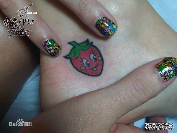 微笑的草莓纹身——2009年7月份,凯特佩里特地前往纹身店纹的,位于其左脚踝内侧,这个微笑的草莓纹身是用来纪念自己之前的15个月的美好时光。