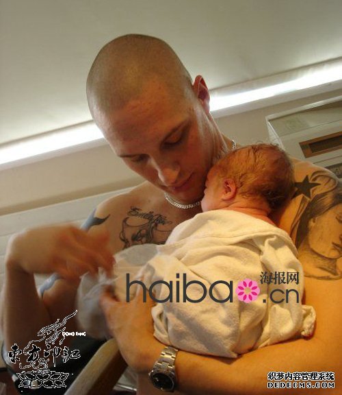 一个星星纹身——那时他知道自己要当爸爸了,于是纹下了这个纹身图案;
