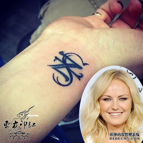 为了纪念其上一段失败的婚姻,好莱坞女演员马琳-阿克曼化悲痛为纹身,选择在其原来的纹身图案上纹上代表对儿子Sebastian的爱的纹身图案,2013年2月,这位被称为“花瓶妻子”的女明星与其丈夫Zincone离婚,这时距离其儿子出生不过7个月,离婚是由其丈夫申请的,在离婚之前,马琳-阿克曼曾在自己的手腕上纹有一个字母“Z”的纹身图案,这个字母纹身指的是其丈夫Zincone。但是在今年的2月15日,马琳-阿克曼在前往科尔多瓦旅行时,在迈阿密的一家纹身店内修改了这个纹身图案,修改后的纹身图案上多了一个字母“S”,而这个“S”纹身代表的是其10个月大的儿子Sebastian,马琳-阿克曼貌似已经开始了其全新的生活。