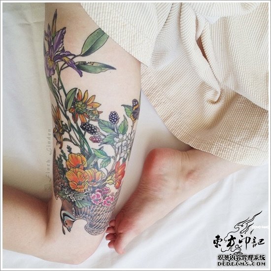 女子纹身算是漫长的纹身历史中一朵亮丽的奇葩,殊不知,在纹身曾不被看好的年代,最早尝试纹身的女子,可是顶着不少的压力。当然也有彪悍的女子为了取悦男性而忍痛在身上纹身的先例,例如日本艺妓。随着纹身艺术的普及和流行,有越来越多的女子喜欢上了这种纹身艺术,于是大腿纹身横空出世了。大腿算是整个人体中比较好的纹身位置,这里的皮肤不仅紧致,而且更能忍受疼痛,更为重要的是,这里的纹身面积比较大,纹上一个大作委实很拉风。看看这些大腿纹身的图片,有没有感到很赏心悦目呢?