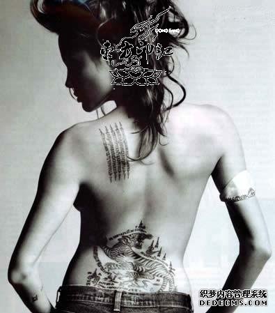 这处被风掀开的纹身图案,是安吉丽娜朱莉著名的孟加拉虎纹身,安吉丽娜朱莉是典型的纹身控,其身上的纹身图案可谓数不胜数,不管是高棉语纹身,十字架纹身,还是这处孟加拉虎纹身,都让这位本来身材已经十分火辣的美人又增添了不少姿色,据悉,安吉丽娜的这处孟加拉虎纹身是在泰国纹的,为其纹身的是泰国的一位著名的纹身大师。安吉丽娜朱莉的这处老虎纹身无疑为其添加了不少霸气,毕竟很少有女星有胆量纹这么彪悍的纹身图案。