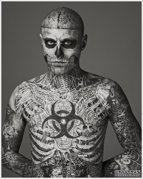 有人说,穿衣服是为了给别人看,那么这些把全身纹身的人们是为了神马呢?理由有成千上万种吧,但是最根本的一个理由是这些纹身者喜爱纹身这门艺术。当然那些真正能成为纹身艺术大作的全身纹身者,大多是付出了不少时间和心血的。从构图到纹身,每一个细节都饱含了纹身师和纹身者的诸多心血。毕竟作为画布的人体不是寻常的画布,如何设计图案,如何表现纹身的效果,如果没有一番研究和功力,委实创作不出这么优秀的全身纹身作品,据悉,被称为“僵尸男孩”的加拿大男孩为了完成其全身纹身的计划,先后花费了将近三年的时间。当然,在这期间,该男孩仍然要出门工作赚钱糊口。不过幸运的是,其极具创意的纹身杰作,被慧眼识珠的时尚界人士看中,该男孩凭借身上的纹身艺术一脚踏进了时尚界和娱乐界,拍摄封面,出演MV,代言广告,俨然一个纹身明星大咖!