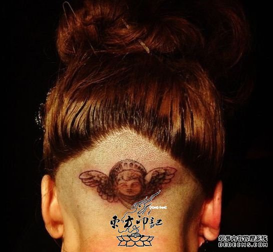在Lady GaGa的诸多雷人造型中,剃光头简直算不上其中之一,但是在光头上纹身就真真的很雷人啦。据纹身爱好者透露,Lady GaGa的后脑勺上确实纹有一个纹身,而这个纹身图案并非是为了炫酷张扬个性而纹的,而是为了纪念一位好友去世的母亲,据悉,Lady GaGa的摄影师好友Terry Richardson的母亲不幸去世,为了表达对这位母亲的哀悼和纪念,Lady GaGa先是剃光后脑勺头发,然后请纹身师在这个位置纹上了一个天使纹身的图案,纹身完成后,Lady GaGa将纹身照片上传到推特上,并附文道:“这是为了你——Terry!对你母亲的离世我感到很悲伤,虽然她走了,但是她永远活在我们心中!”