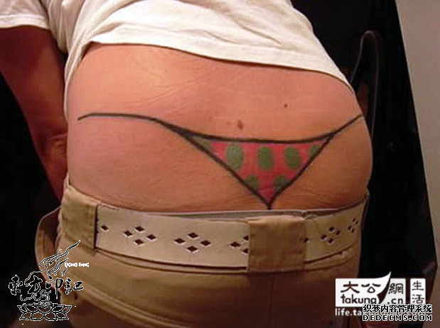 一提起臀部纹身,就不得不提起最近英国凯特王妃到访新西兰时遭遇的尴尬,在新西兰政府为凯特王妃一家举行的欢迎仪式上,就出现了这种露着臀部纹身的毛利族武士们,虽然这是毛利族的古老纹身传统,但是这样的臀部纹身终究还是很不雅呀,还好凯特王妃不失皇室风范,很从容的面对了。而放眼国外纹身控们的臀部纹身,则更加让人大跌眼镜,有纹身者将《圣经》的经文纹在了臀部上,这样的虔诚委实很出众,还有纹身者将彩色的丁字裤纹在了臀部上,这样的着装的确是一劳永逸呀,更有纹身者将一大片的红玫瑰纹在了臀部上,而这个彪悍的纹身者正是英国女星谢丽尔·科尔,玫瑰花的确很好看,但是纹错了位置,而最后谢丽尔到底是后悔了,决定去除这个著名的臀部纹身。