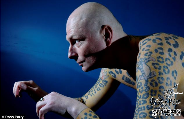 据悉,这位荷兰艺术家名叫Artur Mrozowski,41岁,其身上的纹身图案是模仿动物捷豹的花纹而纹的,为了完成这个纹身大作,Artur的妻子花了整整12天半的时间为丈夫纹上数以百计的豹斑,覆盖整个身体皮肤的90%,包括躯干、后背、四肢等部位。随后,纹身师Artur给自己的纹身图案拍照,并在eBay购物网站上,以1.5万英镑(约合人民币15万元)拍卖他身上刺有完整捷豹纹身的皮。当然这张纹身皮并非现在就可提货,而是要等到他死后买方才可拥有。同时,Artur还表示,他所做的这一切都是为了给孩子的未来提供一个好的开端。如此另类的纹身产品,的确让人大跌眼镜,然而,貌似没有人对此另类的纹身产品感兴趣,到目前为止,网上提供的唯一报价,仅仅是99便士(约合人民币3.96元),这样的价格貌似还不够买一瓶纹身色料吧。