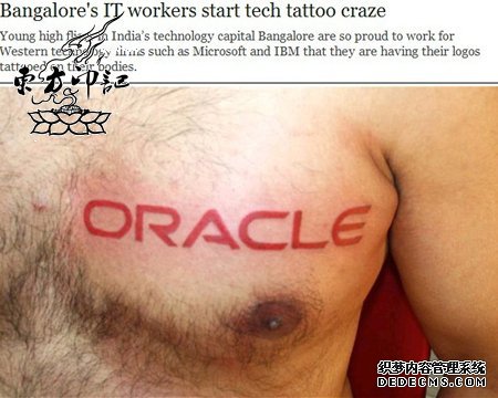 进入世界知名企业,貌似是每一个职场精英们都十分向往的事情,这一点在印度的“科技之都”班加罗尔(Bangalore)体现的十分鲜明,在这个可以和美国硅谷相媲美的地方,这里的IT精英们以进入西方名企工作为荣,为了表示这种荣耀,这些IT精英们纷纷选择用纹身来表达。