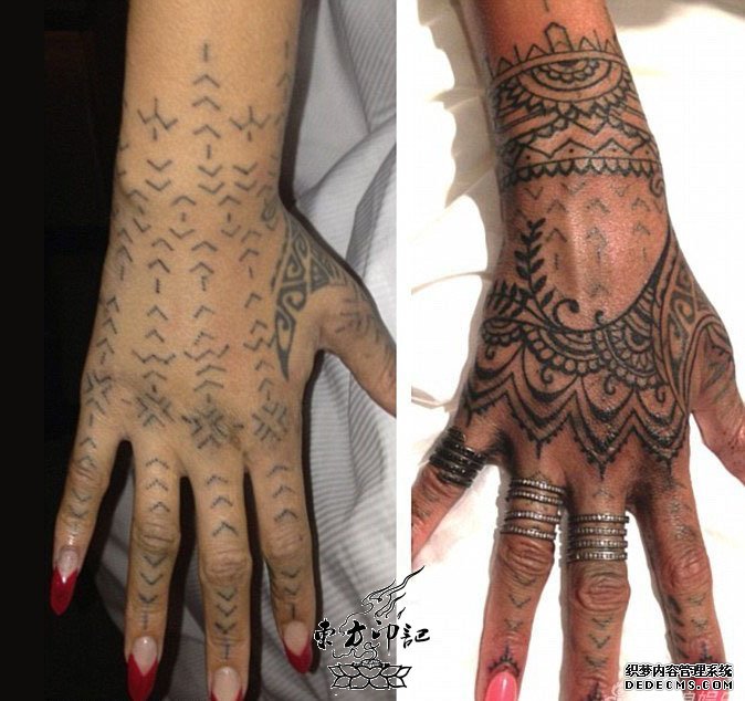 据纹身爱好者透露,蕾哈娜手部的这个纹身,是在2013年的一个作品,是在其前往纽西兰旅行时纹上的,由一位毛利族纹身师,采用毛利族传统的纹身方式进行的纹身,当然,其疼痛程度可想而知。对于纹身师的深厚功底以及蕾哈诺的大胆,必须得点个赞啊!