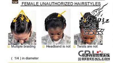 除了对纹身有了新的政策外,新出台的政策还规定了男女军人的发型,本着干净、保守、安全的目的,这些军人们不得不放弃自己个性的玉米辫、爆炸头、摩霍克头,或者是马蹄形等发型。对于那些要把整个青春都奉献给军队的人来说,这样的规定的确有些苛刻!