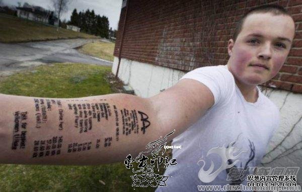 如果说你喜欢麦当劳,那么只是吃麦当劳貌似还是不够的吧,挪威有一位18岁男孩儿,将麦当劳的收据纹成了胳膊上的纹身图案,如此赤裸裸的示爱,果真是因为喜爱麦当劳吗?