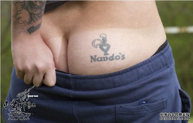 据纹身爱好者透露,这位纹身的小男孩名叫布拉德利·霍尔曼,今年19岁,其常去的一家炸鸡店名为“南多炸鸡店”,五年前,这位男孩在这里品尝了第一份炸鸡,随后便被这里的美味深深的吸引了,据其本人统计,自己每年在“南多炸鸡店”的消费大概要超过1500英镑(约1.5万元人民币),而为了能够便宜地吃到美味,其决定将这家炸鸡店的名字纹在自己的身上,于是这位小男孩的屁股上便多了一个“南多炸鸡店”的标志纹身!