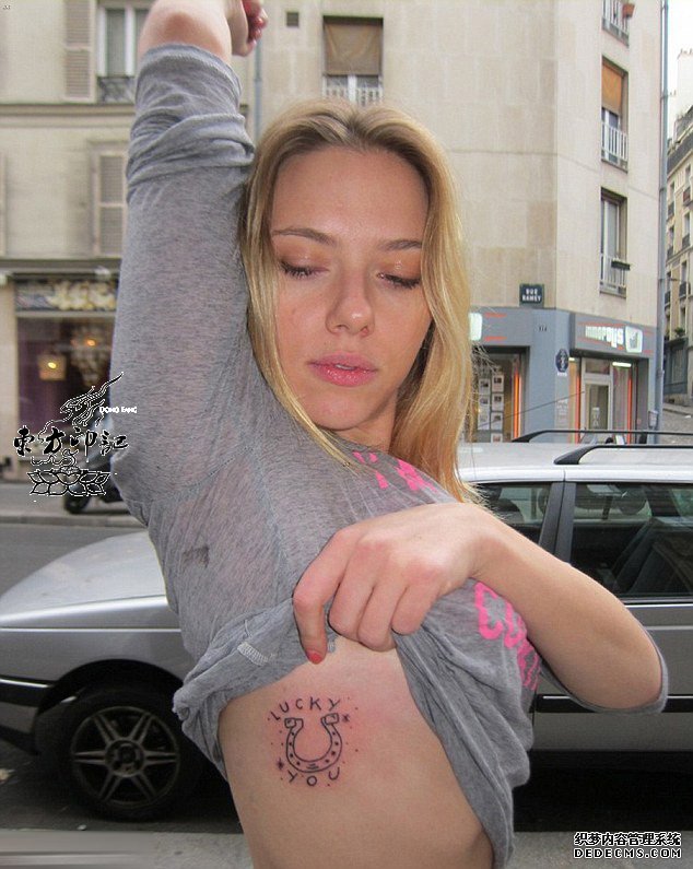 据纹身爱好者透露,酷爱纹身艺术的斯嘉丽约翰逊,在观看了一场纹身展会后,慕名拜访法国巴黎的一位纹身艺术家,这位名叫Fuzi Uvtpk的纹身师给失恋的斯嘉丽约翰逊创作了一个“Lucky You”的马蹄纹身,不过这个纹身图案看起来像是一个儿童涂鸦之作,或许大俗即大雅吧!巧合的是,斯嘉丽的现任老公罗曼之前也找纹身师Fuzi纹了一个Lost Illusions的纹身图案,于是Fuzi在和斯嘉丽一起吃饭时叫上了罗曼,正是这位纹身师月老,两人在饭桌上认识了。尽管这位罗曼不是圈内人,长相也一般,并且还算不上富豪,但是斯嘉丽约翰逊却称赞道:“他很神奇!”