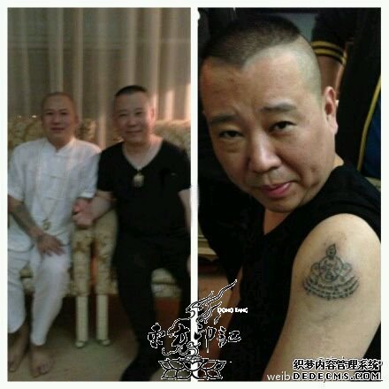 据纹身爱好者透露,郭德纲的这个纹身图案是一个泰国刺符,而为其创作这个纹身的不是别人,而是泰国金面尊者阿赞苏斌,原古巴苏斌大师,可见,郭德纲老师的品位非同一般啊!据悉这个刺符纹身也是泰国法力纹身的一种,这样的纹身招财,招人缘,挡险避灾还转运,对于“非著名相声演员”郭德纲老师来说,这样的纹身图案真真是极好的!