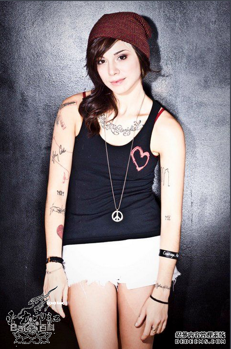 人们常常用“大器晚成”来形容那些后来居上的成功者们,对于1986年8月19日出生的美国创作女歌手克里斯蒂娜·佩里(Christina Perri)来说,其的确是大器晚成者,但是其身上的纹身图案却是在15岁的时候就已经开始纹上了。