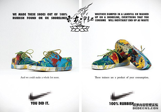为了制作这些彩绘纹身跑鞋,他们用拖网从河流中拖出被人们丢弃的塑料垃圾,并将其制作成彩绘纹身的跑鞋,以此来提醒人们,不要乱丢垃圾,改掉不良的消费习惯!