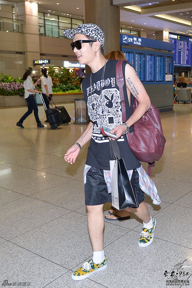 韩星龙俊亨现身机场 潮范儿打扮纹身抢镜