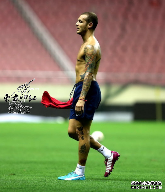 在2014年巴西世界杯的最后夺冠期间开赛,中超联赛的确开始的有点不太合时宜。最近,中超第22轮比赛将开始,上海绿地申花队主场迎战广州恒大队,作为广州恒大新援的迪亚曼蒂,果然是入乡随俗,在身上新添了多处汉字纹身,十分抢镜!