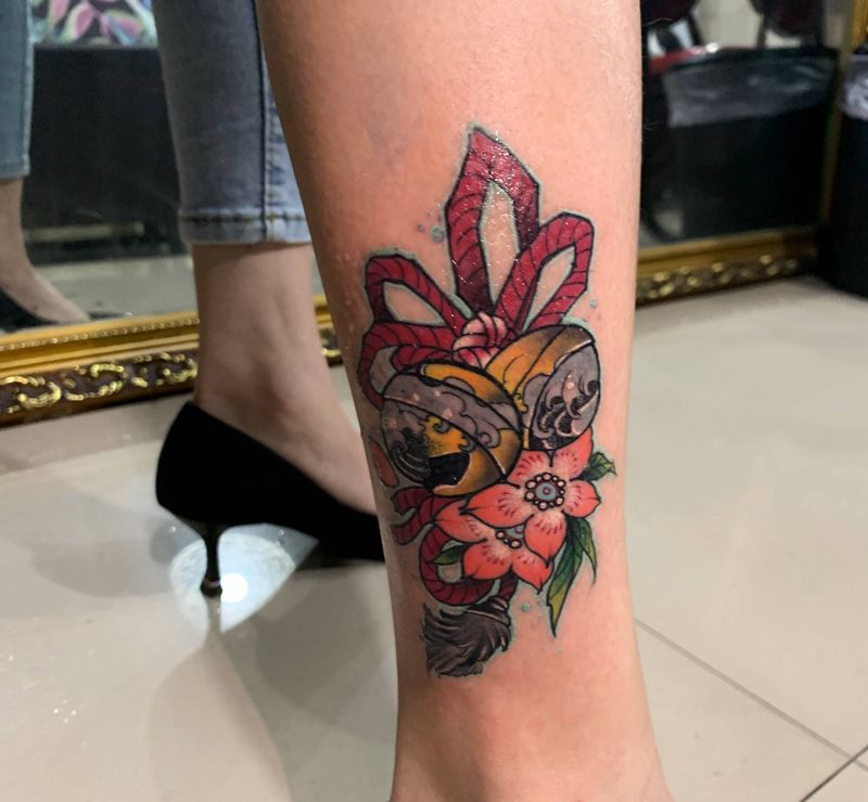 小金鱼 麻药效果纹身图片_腿部New School纹身图案