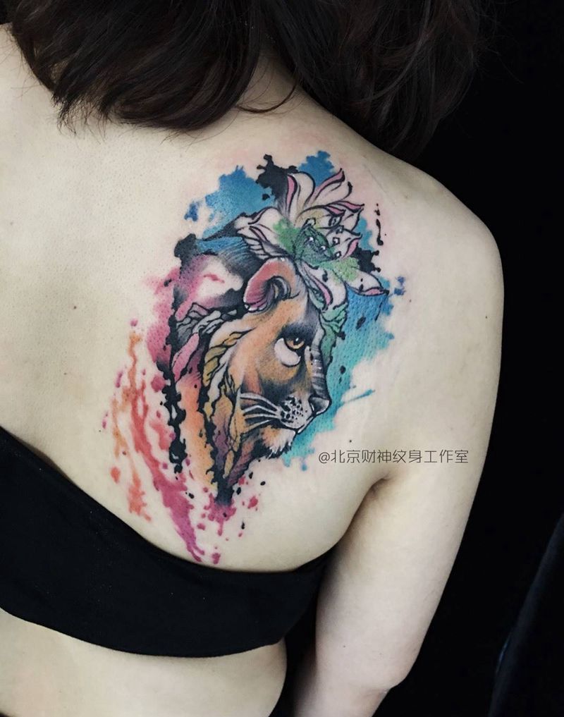 百兽之王纹身图片_成品写实欧美动物纹身图案