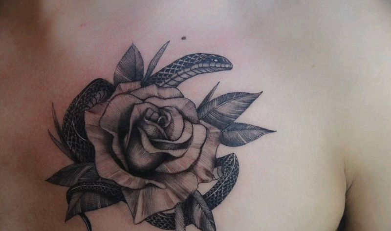 花儿纹身图片_胸部水墨水彩花性感纹身图案