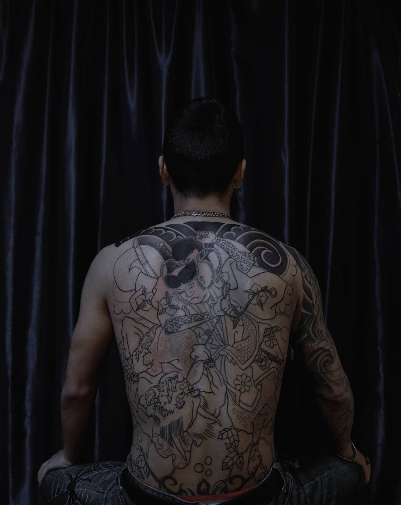 驻店师傅今日作业纹身图片_背部老传统纹身图案