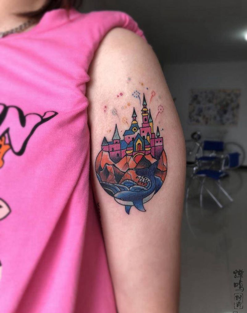 走钢丝的小丑纹身图片_肩部腰部New School点刺纹身图案