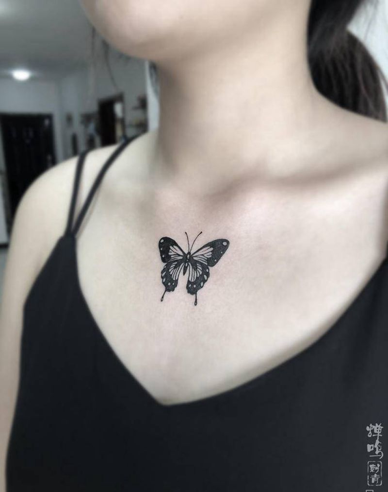 乌鸦纹身图片_胸部New School点刺纹身图案