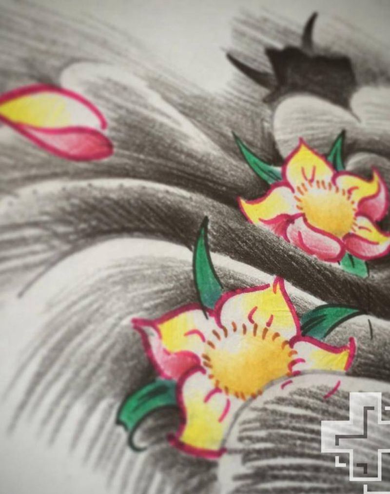 水彩泼墨降魔杵纹身图片_手稿肩部胸部腰部背部手臂腿部清新静物原创纹身图案