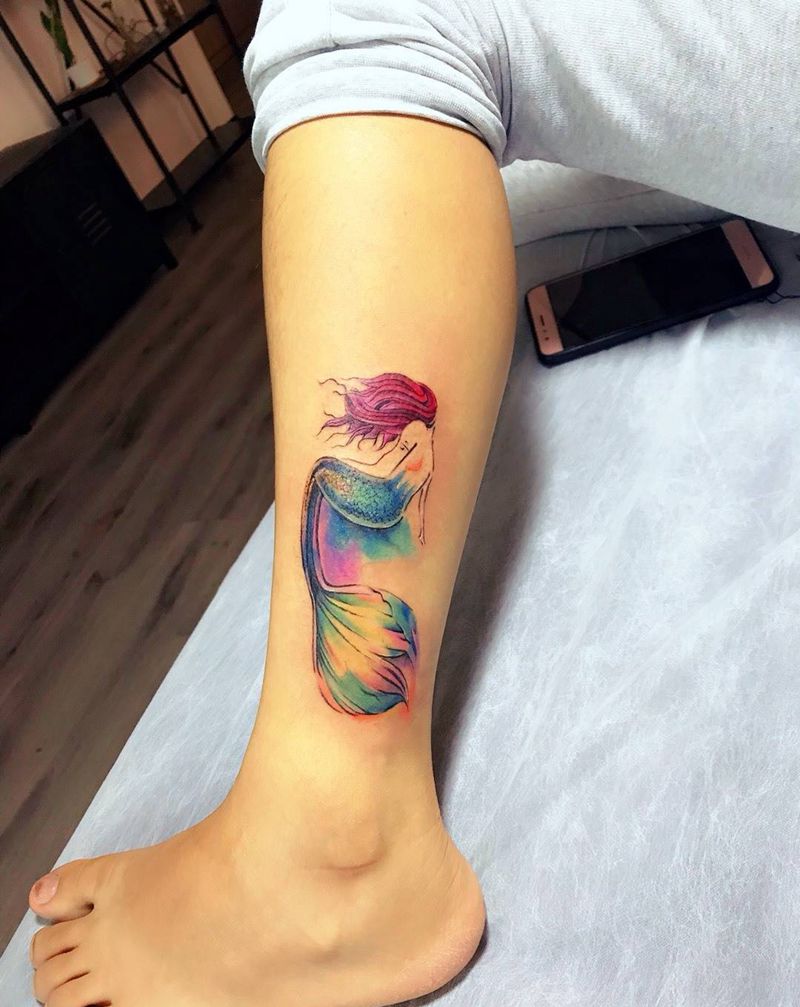 小腿艺妓纹身图片