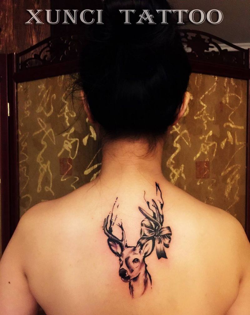 摩羯座♑️纹身图片_成品肩部背部清新原创鬼神动物宗教欧美国画纹身图案