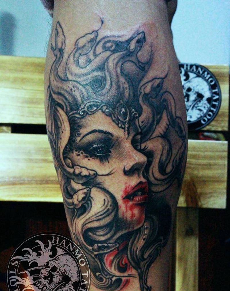 美杜莎头像纹身图片_臀部腿部欧美写实纹身图案