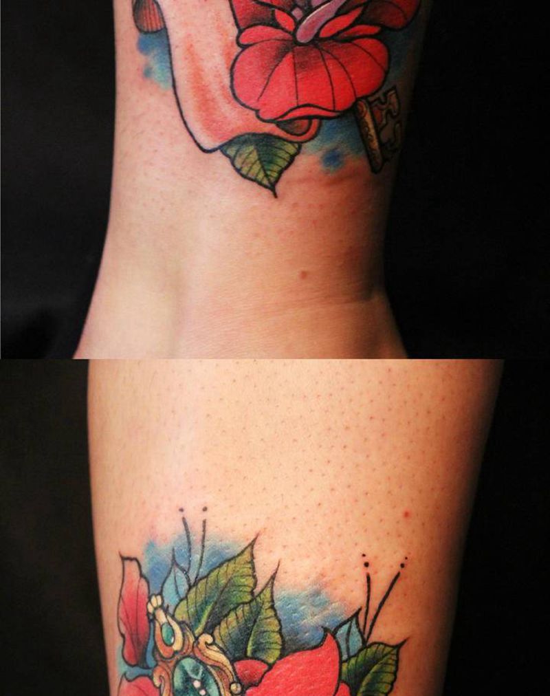莲花盖图纹身图片_腿部Old SchoolNew School纹身图案