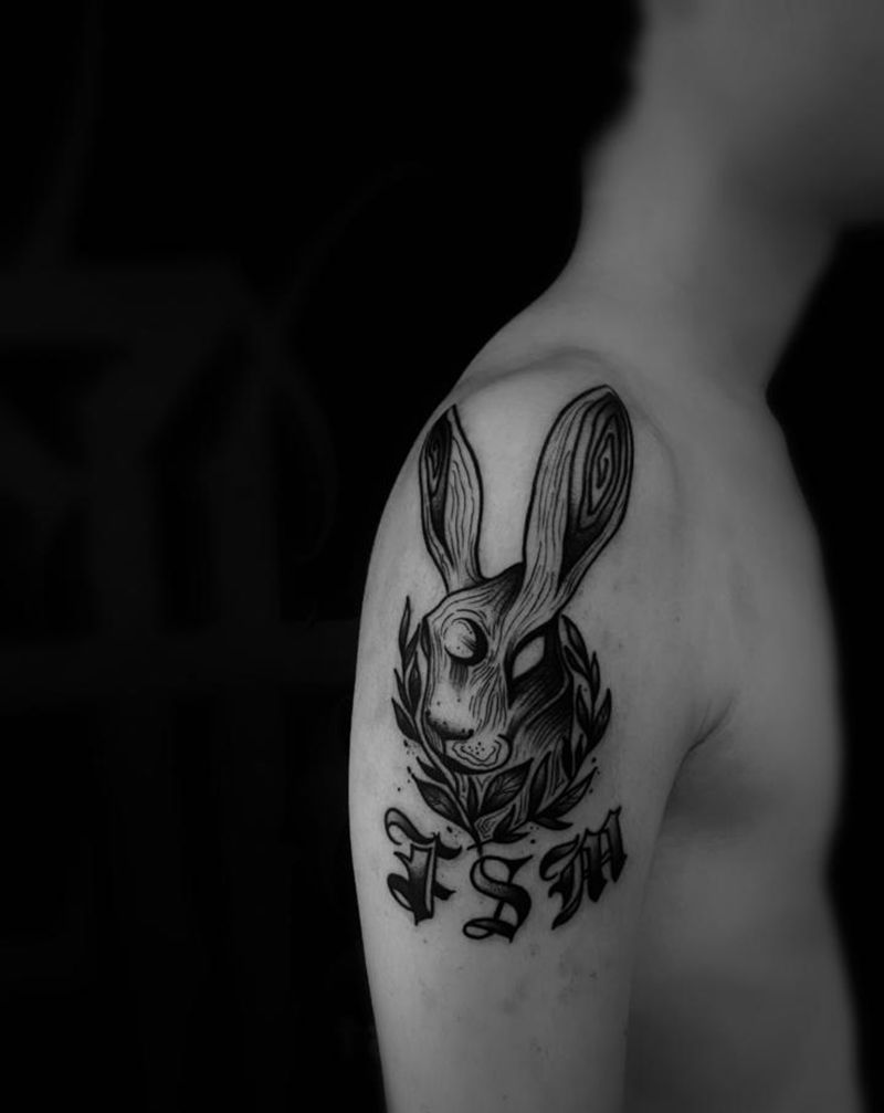 填空//指虎纹身图片_肩部欧美写实点刺纹身图案
